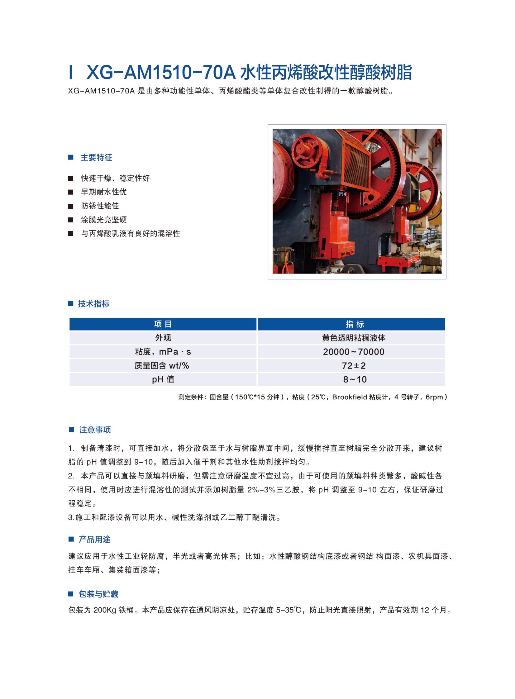 XG-AM1510-70A 水性丙烯酸改性醇酸樹脂